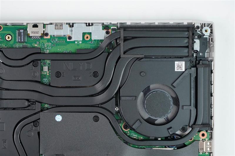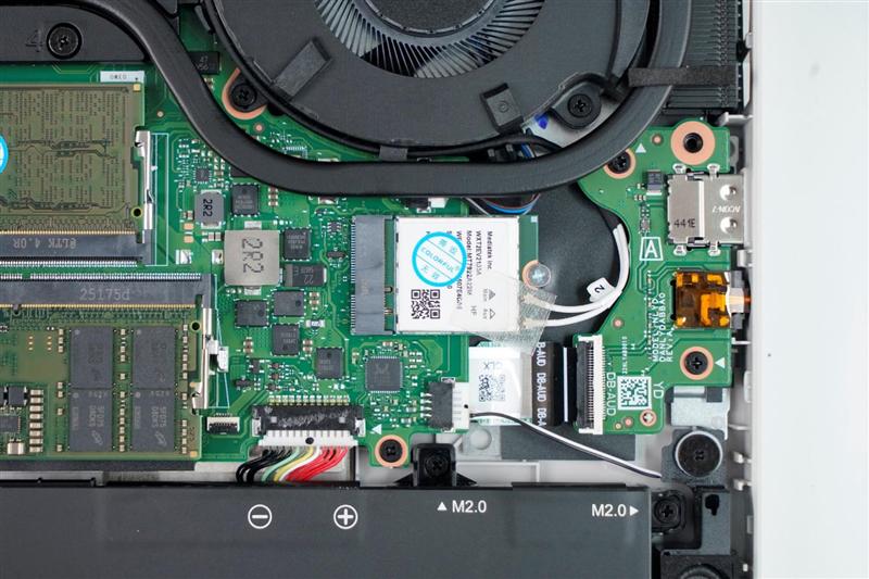 但这个楔形设计也对内部空间造成了一定的影响,可以在拆机图片中看到,电池下方其实还有一部分空间其实是无法充分利用的,这也造成了MEOW R16 Pro笔记本的电池容量偏低,续航表现不佳,鱼和熊掌无法兼得。