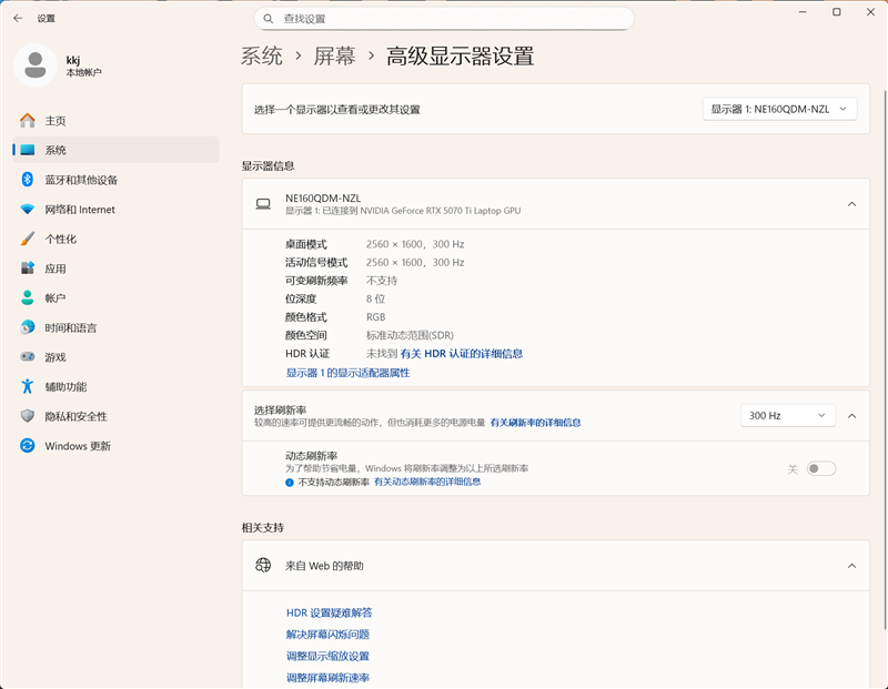 在Windows的设置菜单中,MEOW R16 Pro笔记本搭载的16英寸IPS广视角屏,可以直接启用300Hz的高刷新率。