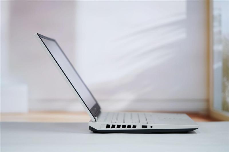 电池方面为了机身的楔型设计也做出了一些取舍,63Wh的容量在16寸游戏本中并不算大,可能玩家在外出使用时,还是需要注意下电源位置的,不过相对的,电池容量小了一些也让整机重量也轻了一些,携带起来压力也会小一些。