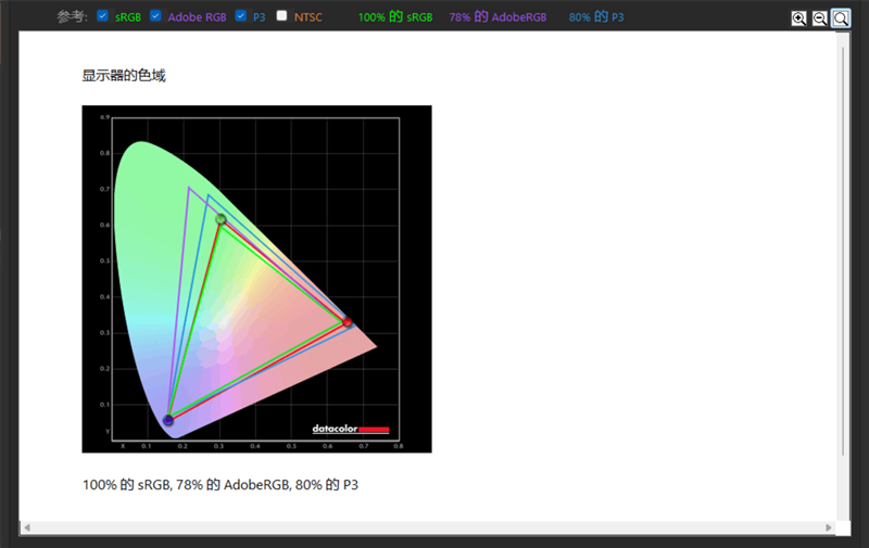 我们实测MEOW R16 Pro笔记本的屏幕,可以覆盖范100% 的sRGB色彩空间。