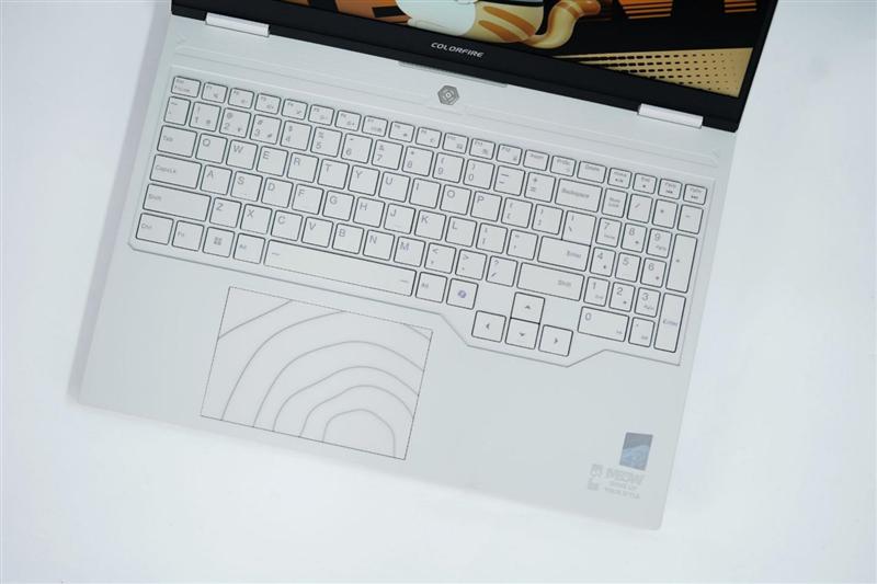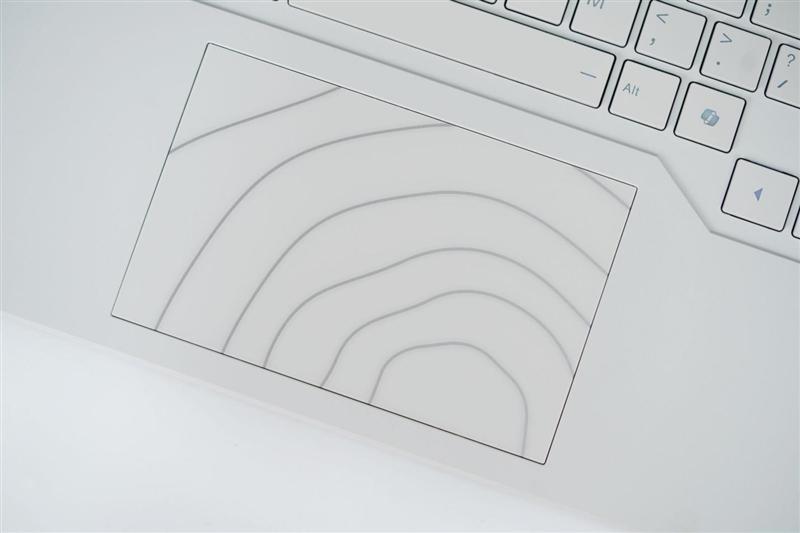 MEOW R16 Pro笔记本的触控板,同样印制了类似顶盖上的等高线线条图案。