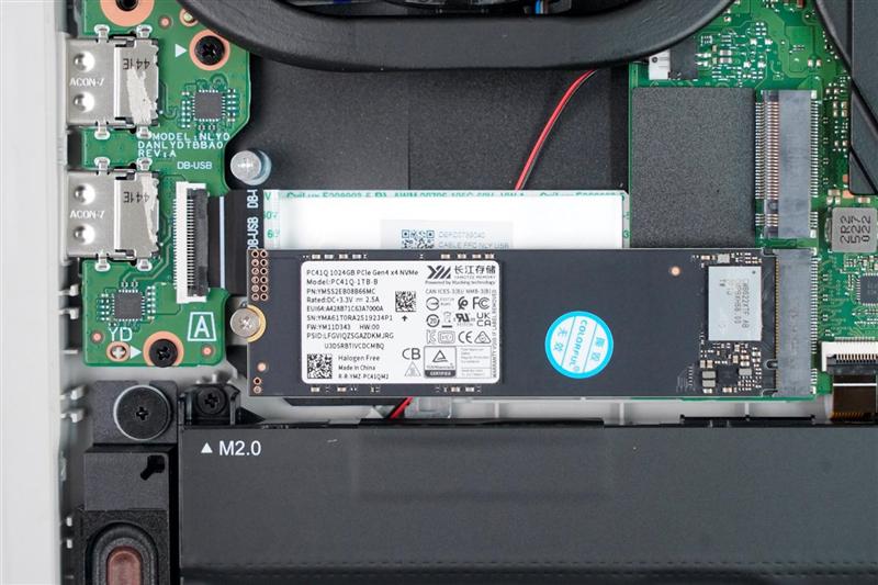 MEOW R16 Pro笔记本提供了两个M.2 SSD插槽,预装的SSD也是我们的老朋友,来自长江存储的PC41Q 1TB SSD。