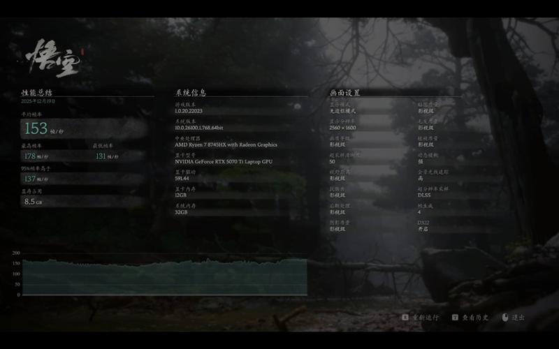 在《黑神话·悟空》中,使用影视级画质预设,DLSS采样精度设置为50,记录4K分辨率时的游戏帧数。